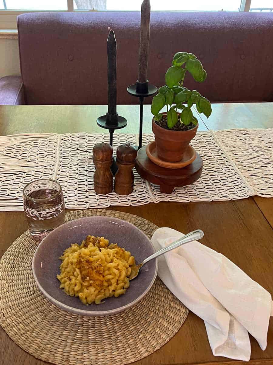 I like to use my vintage Pfaltzgraff Yorktown baking dish. It’s perfect for the two of us!