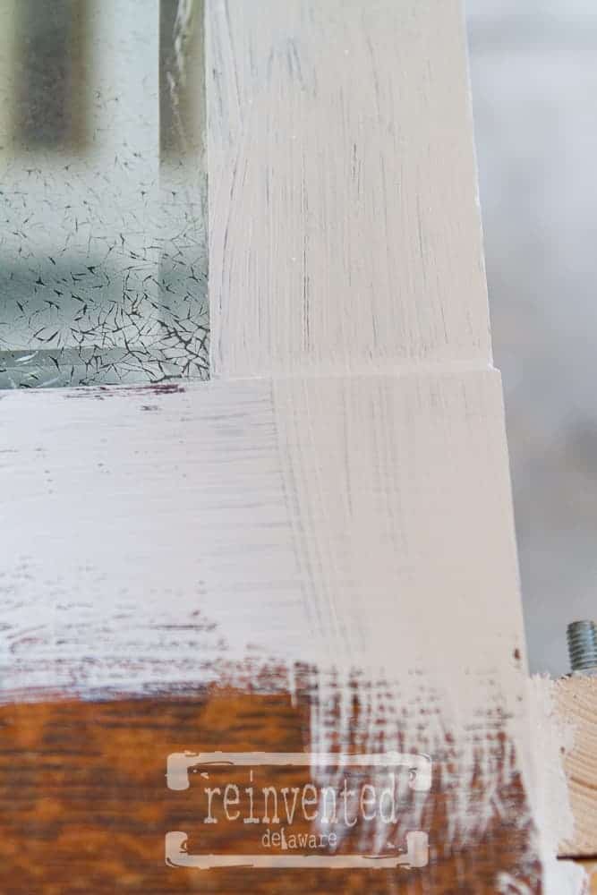 After painting the first direction I then go back and paint over the wood that goes in a different direction. Do this before the paint dries and be sure to pay attention to the grain of the wood! It does make the finished project more polished, in an imperfect kind of way 😉