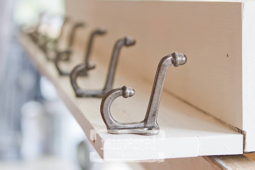 By the way, before adding the hooks I used General Finishes Top Coat in Flat Out Flat. It left a beautiful flat finish that helped to keep the integrity of the age of the piece.