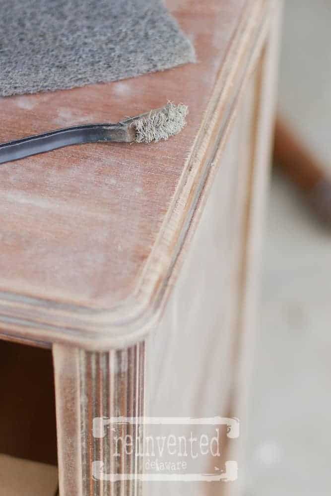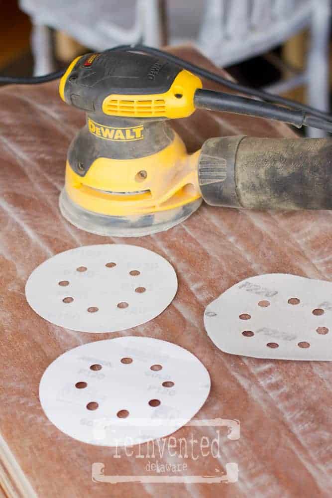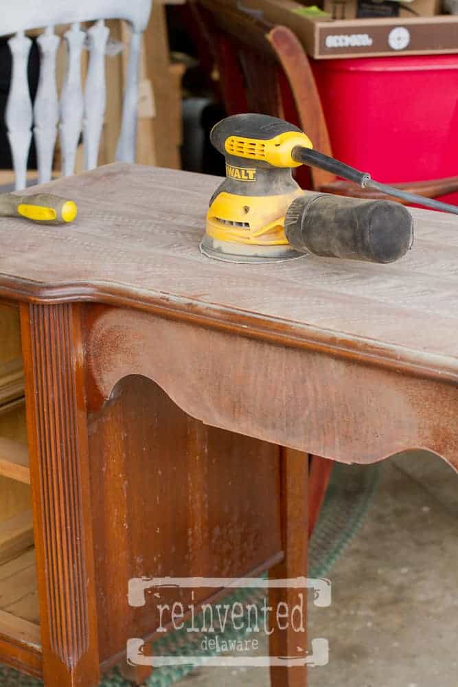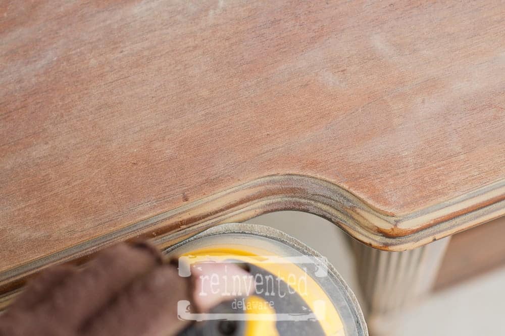 If you have a steady hand you can use the sander around the curved edges. Be careful though, you can quickly change the shape of the furniture. If it could only be so easy with my hips :). Anyway – you can always use a sanding sponge if you are not sure.